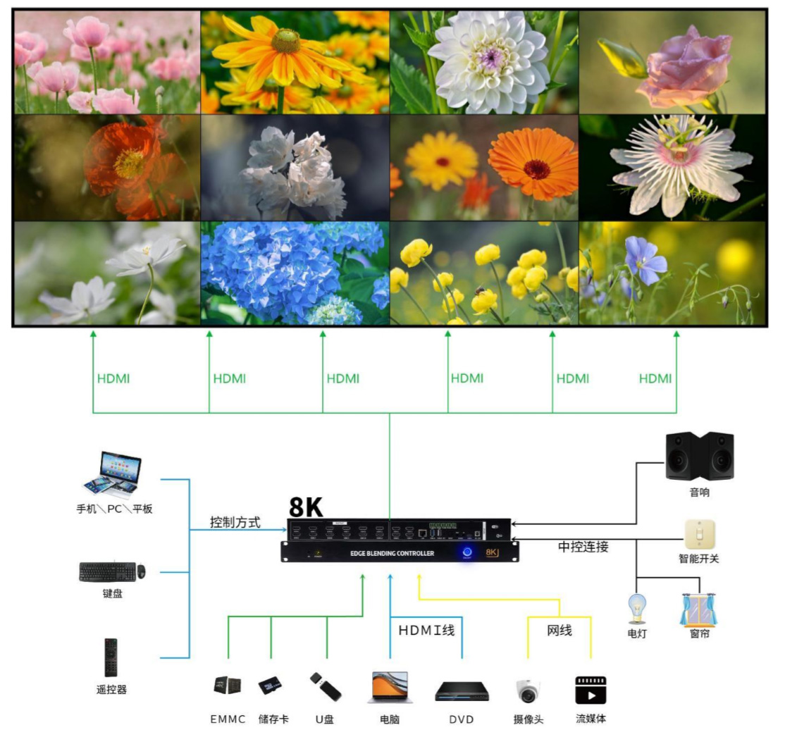 ✦支持图片、视频、HDMI采集及网络信号任意漫游,实现不同尺寸、位置、层次的叠加。