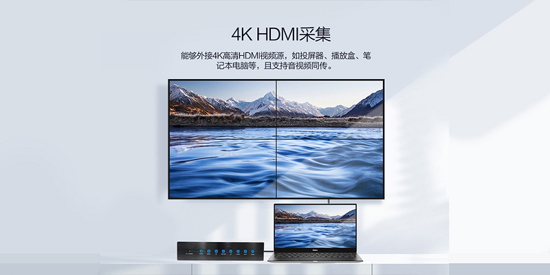 5.4KHDMI采集。能够外接4K高清HDMI视频源,如投屏器、播放盒、笔记本电脑等,且支持音视频同传。
