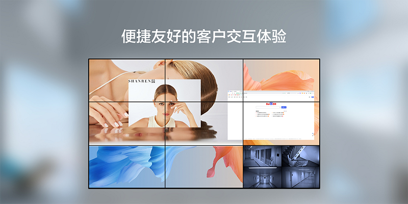 8.便捷友好的客户交互体验。各种音视频文件、图片、Web网页以及4K HDMI采集、网络接入信号能够以窗口的形式动态、实时地显示,并可以任意跨屏漫游、放大、缩小及混合叠加。